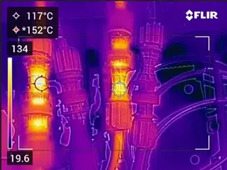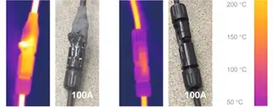 Príklad prehrievania konektora viditeľný termokamerou