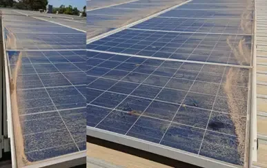 Keď sa na povrchu panelov usadí prach, listy, vtáčí trus či iné nečistoty, môžu znížiť výrobu energie aj o10 % alebo viac. Aj keď dažďové kvapky často pomáhajú panely „umyť“, pri dlhodobo suchom období táto samočinná očista nestačí. Obzvlášť náchylné na usadzovanie sú panely umiestnené na plochej streche alebo s malým sklonom.