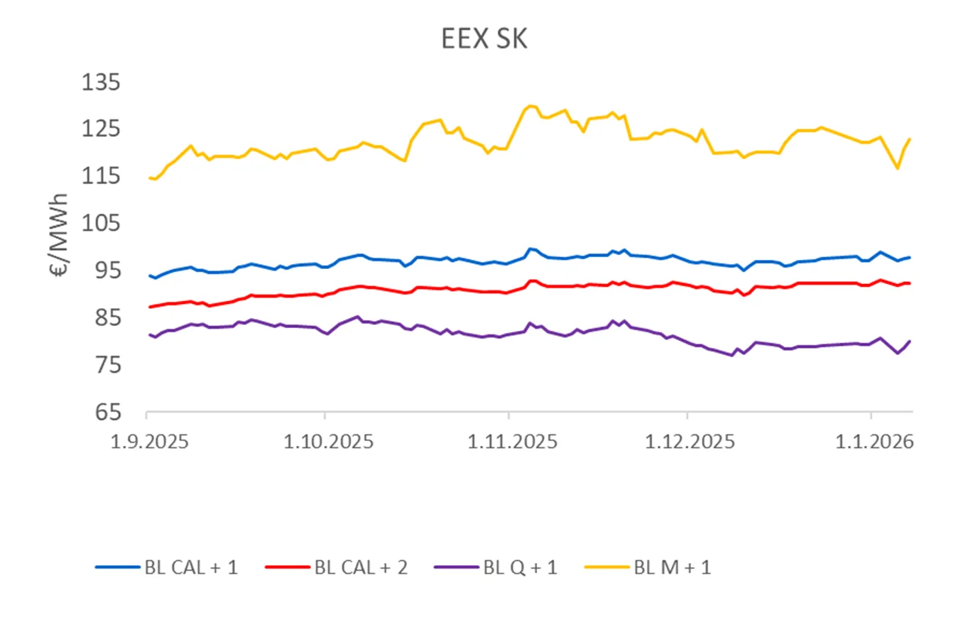 Celkovo tak december 2025 priniesolkombináciu lacnejšieho plynu vs. drahších povoleniek, pričom ku koncu mesiaca sa pozornosť presunula od pohodlia miernej zimy k riziku chladnejšej periódy, nižších zásob a nižšej likvidity počas sviatkov.