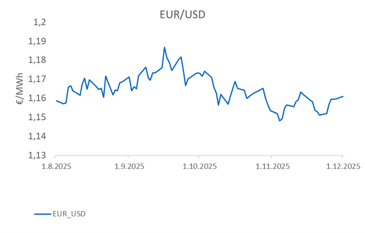 Hneď na začiatku mesiaca ropa posilnila po oznámení OPEC+, že odQ1/26 dočasne pozastaví plánované zvyšovanie produkcie. Hoci v októbri – decembri 2025 aliancia stále pridávala produkciu tempom 137 000 barelov denne, informácia o pozastavení expanzie zmiernila obavy z prehlbujúceho sa nadbytku na trhu.