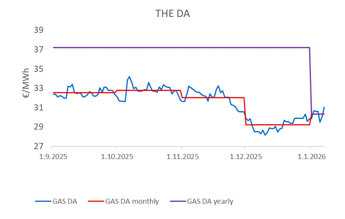 Celkovo bol záver roka charakteristickýprudkým poklesom cien plynu v prvej polovici decembra, nasledovanýstabilizáciou a miernym oživenímku koncu roka. Trh sa postupne presúval od komfortu silnej ponuky a miernej zimy k opatrnejšiemu hodnoteniu rizík spojených s počasím, zásobníkmi a geopolitikou, čo vytvorilo základ pre vyššiu volatilitu na prelome rokov 2025/2026.
