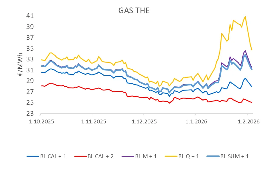 Trh vstupoval do nového roka po mimoriadne chladnom závere roku 2025,čo spôsobilo výraznejší než očakávaný úbytok zásob ešte pred začiatkom hlavnej zimnej sezóny.Už začiatkom mesiaca sa ukázalo, že geopolitika nemusí automaticky zdvíhať ceny plynu: americké útoky na Venezuelu trh s plynom prakticky odignoroval, keďže krajina sa na globálnych dodávkach ropy a plynu podieľa menej ako 1 % a trh rovnako tak slabo reagoval na vývoj situácie na Ukrajine a ďalšie kroky americkej administratívy ohľadom Grónska či hrozieb v colnej politike.