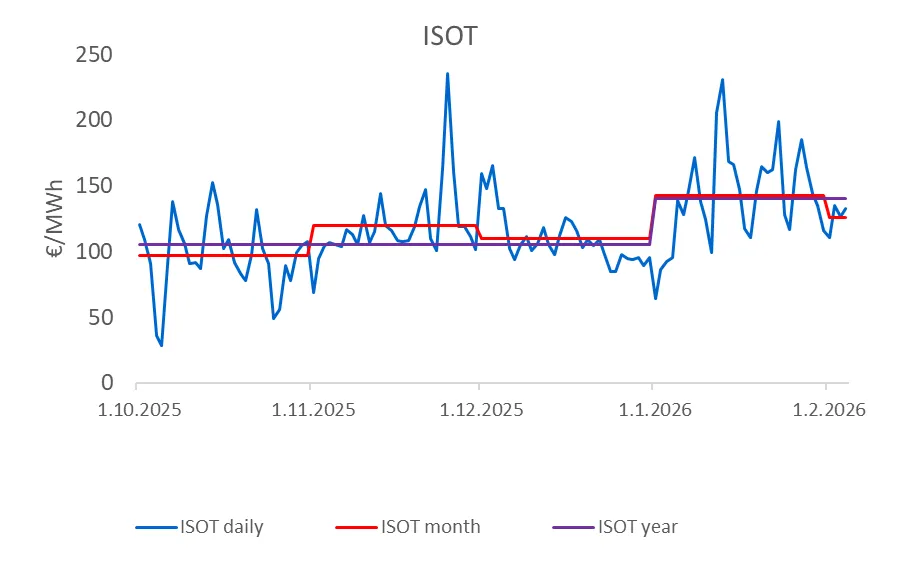 V januári 2026 sa európske veľkoobchodné ceny elektriny pohybovali v režime „počasie + plyn + EUA“, pričom trh reagoval skôr na konkrétne zmeny v bilanciách spotreby a výroby než na titulky z geopolitických udalostí v médiách.